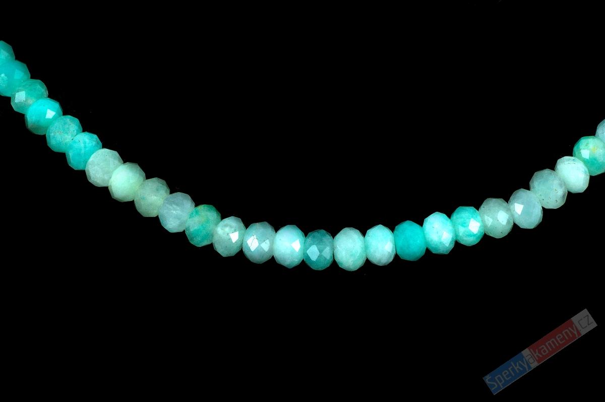 - Náhrdelník z broušeného amazonitu QA z Peru, QA, nádherné tyrkysové barvy, čočky cca 2 mm, stříbro Ag 925/1000 (AIT355B)