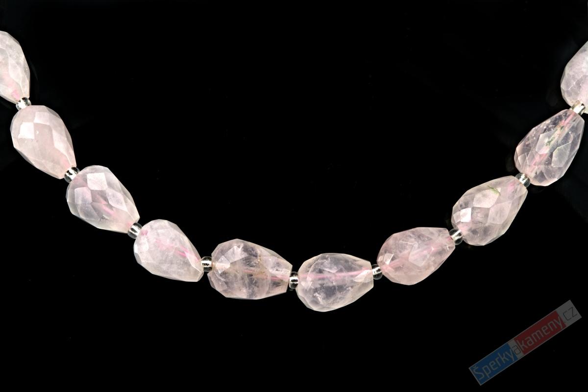 - Náhrdelník z broušeného růženínu QA, kapky cca 10 mm, stříbro Ag 925/1000, krásná světle růžová barva (R4841B)
