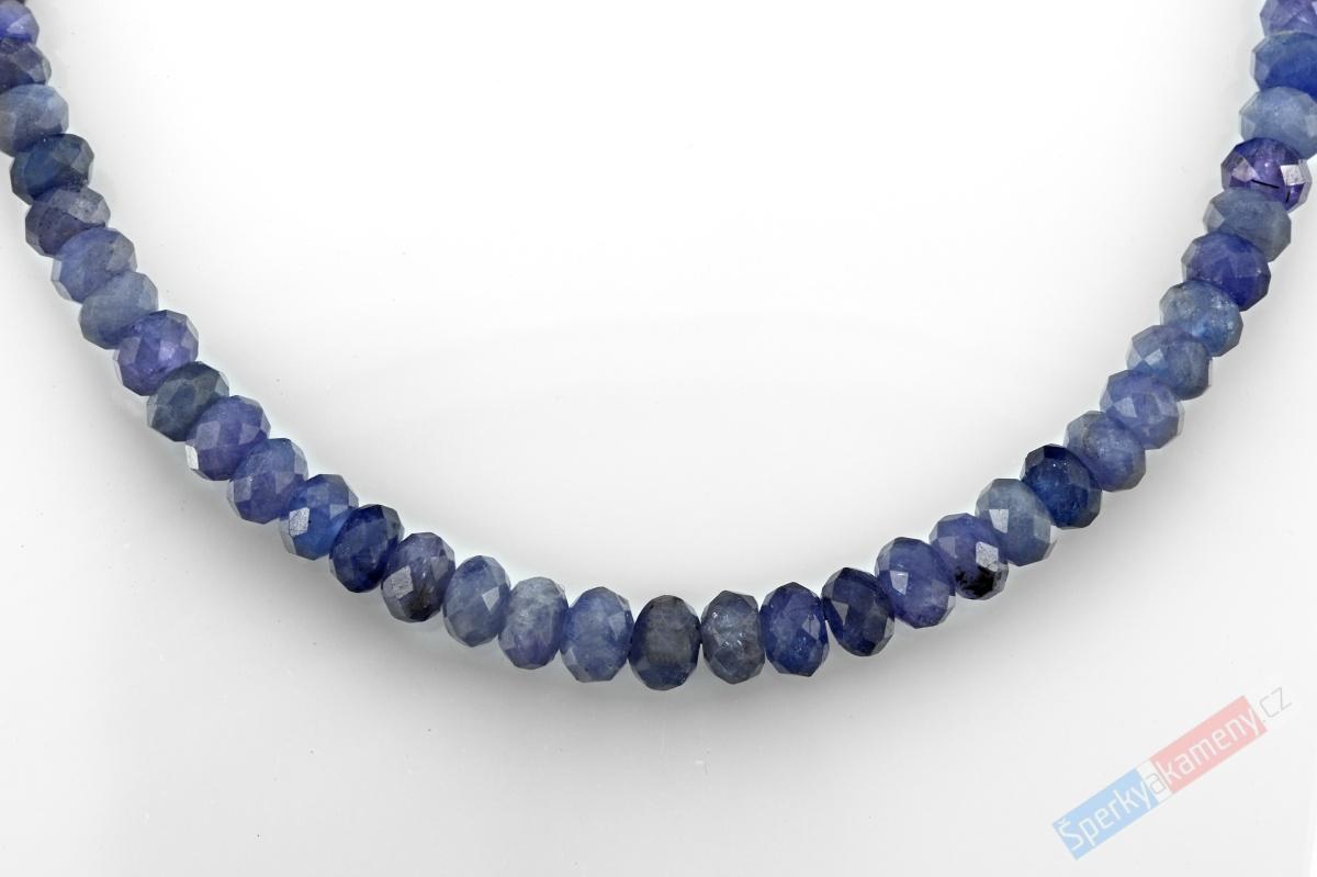 - Náhrdelník z broušeného tanzanitu QA, mírně nepravidelné velké čočky cca 4 x 5 mm, stříbro Ag 925/1000, RARITA (TZ1942B)