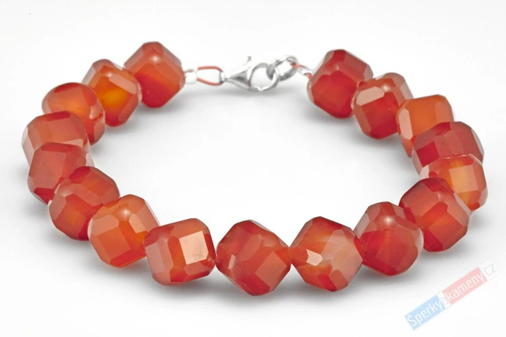 Náramek z broušeného karneolu QA, kostičky cca 8 mm, stříbro Ag 925/1000 (KA4477NS)Skladem 2 ks1 190,00 Kč/ ks983,47 Kč bez DPH