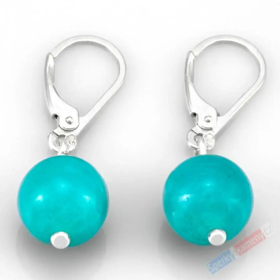 Náušnice z amazonitu z Peru QAA, kuličky cca 10 mm, stříbro Ag 925/1000, nádherná tyrkysová barva (AIT270U)