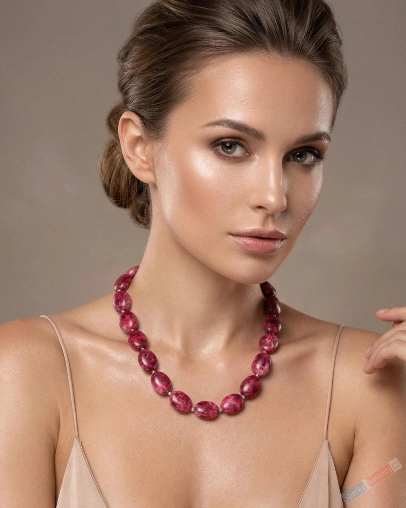 Náhrdelník z thulitu: Třešničkou na závěr je nádherný náhrdelník z thulitu. Jeho syté odstíny povzbudí životní energii a podtrhnou vaši ženskost.