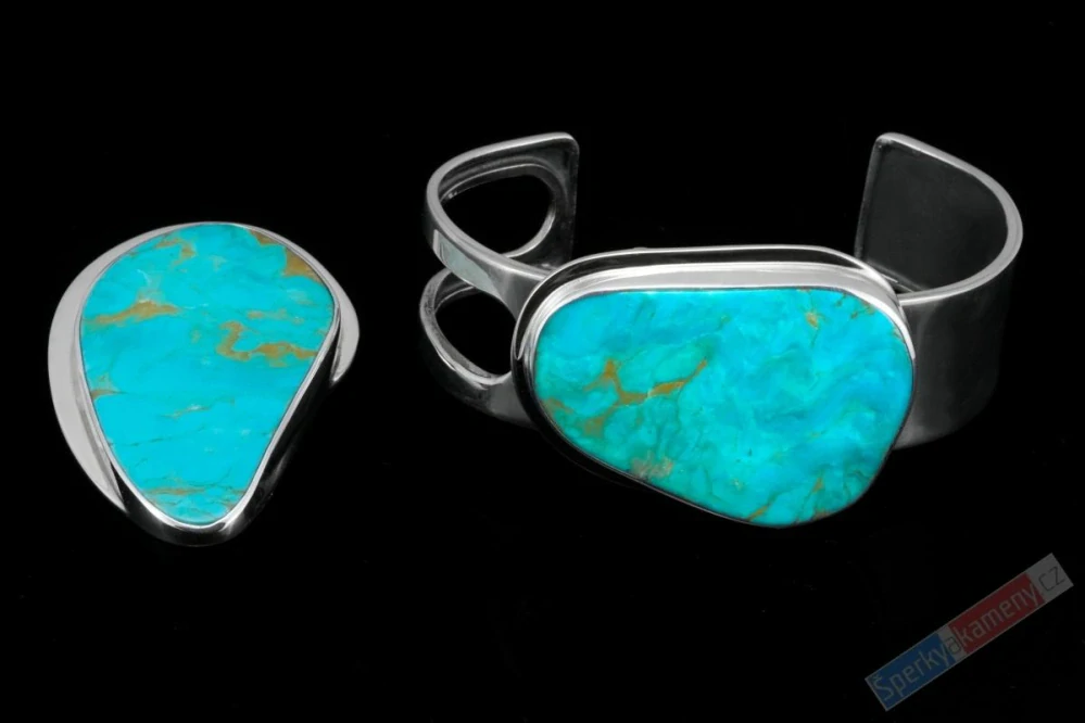- Originální sada z arménského tyrkysu QAA a stříbra Ag 925/1000, velký přívěsek cca 58 x 38 mm a náramek s kamenem cca 48 x 35 mm, "šperky pro princeznu", RARITA (TYS7939SA)