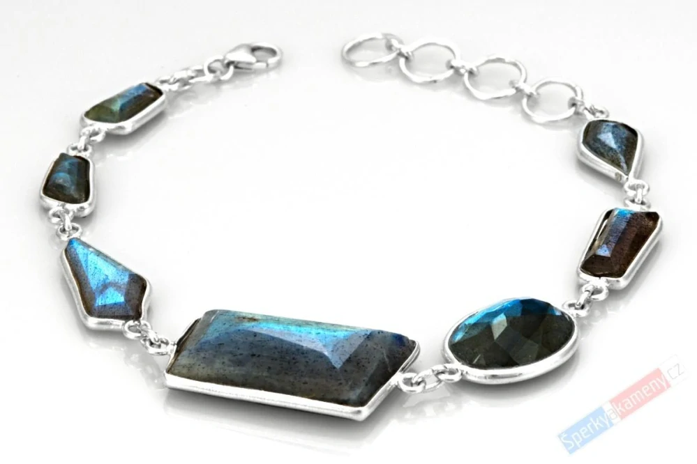 - Originální stříbrný náramek (Ag 925/1000) s broušeným labradoritem QA, sedm kamenů od cca 10 do 24 mm, "barvy mořských hlubin" (LB1218NS)