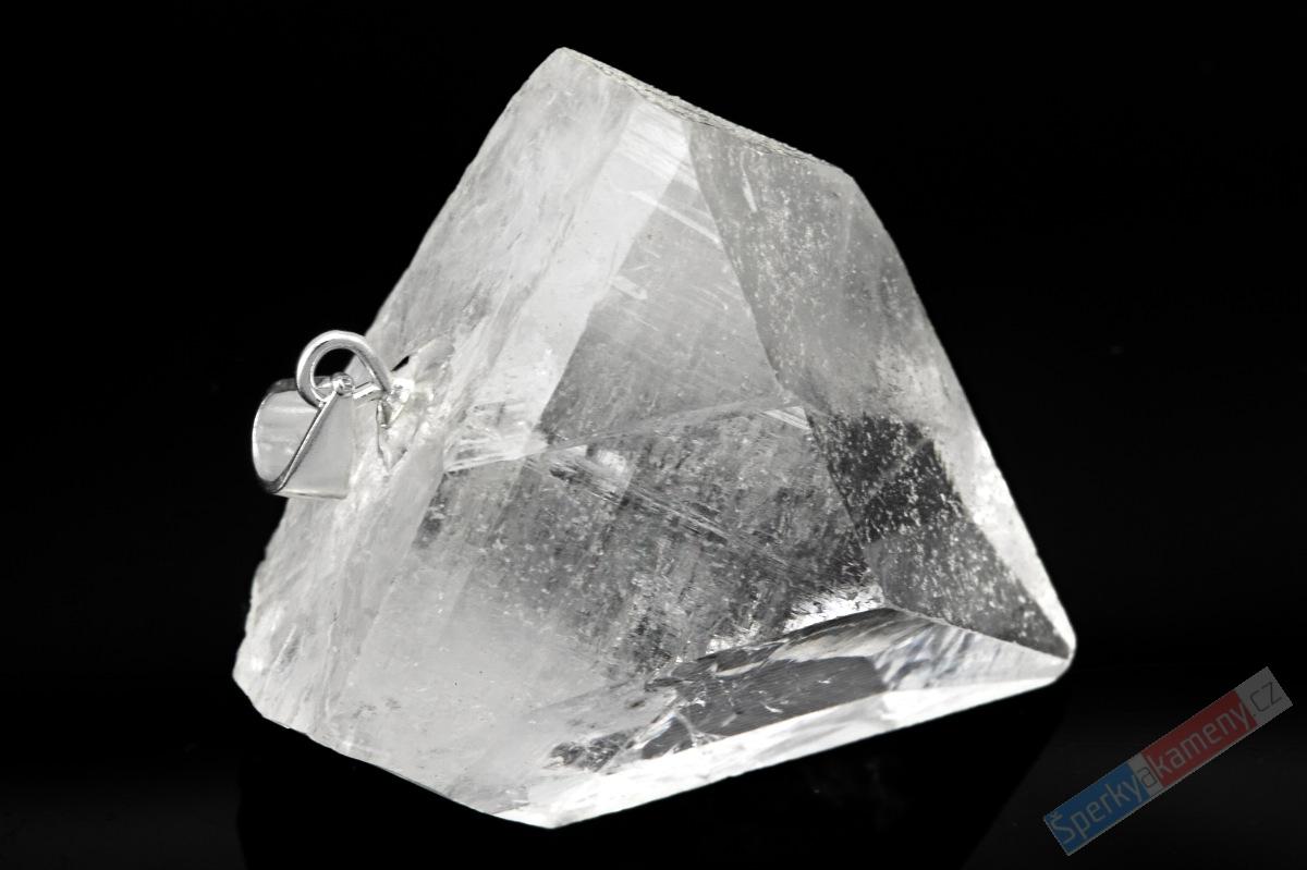 Přívěsek z apofylitu. Přírodní krystal čirý (RARITA). Výška cca 26 mm (s úchytem cca 32 mm), šířka cca 23 mm, váha 9,6 g. Úchyt je ze stříbra (Ag 925/1000). Řetízek není součástí šperku. Původ minerálu: Indie, Poona. Krystal je identický s fotografií.