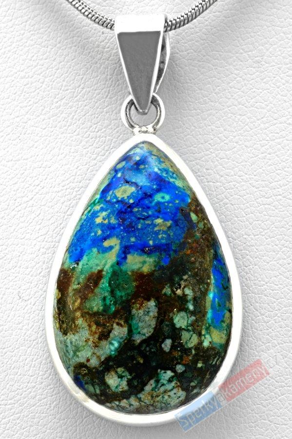 Unisex stříbrný přívěšek (Ag 925/1000) s azuritem QA, kapka cca 32 mm, RARITA (AZ7260P)