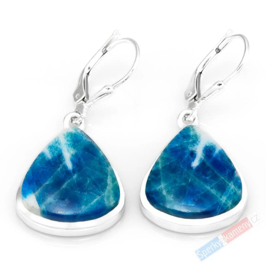 Závěsné náušnice z afghanitu extra kvality QAA (RARITA). Krásné probarvení. Náušnice mají tvar kapek o výšce cca 18 mm (se závěsem cca 35 mm) a šířce cca 17 mm. Váha obou náušnic 7,4 g. Zasazení, úchyt, závěs a zapínání jsou ze stříbra (Ag 925/1000). Původ minerálu: Afghánistán. Náušnice jsou identické s fotografií.