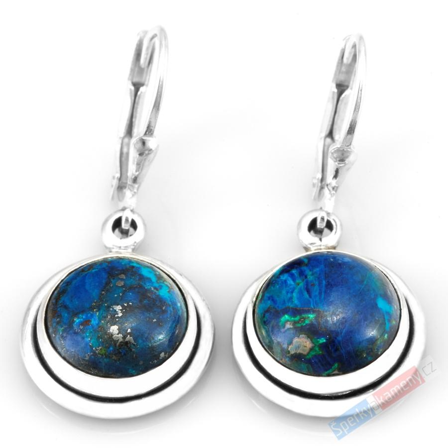Stříbrné náušnice (Ag 925/1000) s azuritem QA, prům. cca 15 mm, RARITA (AR6056U)