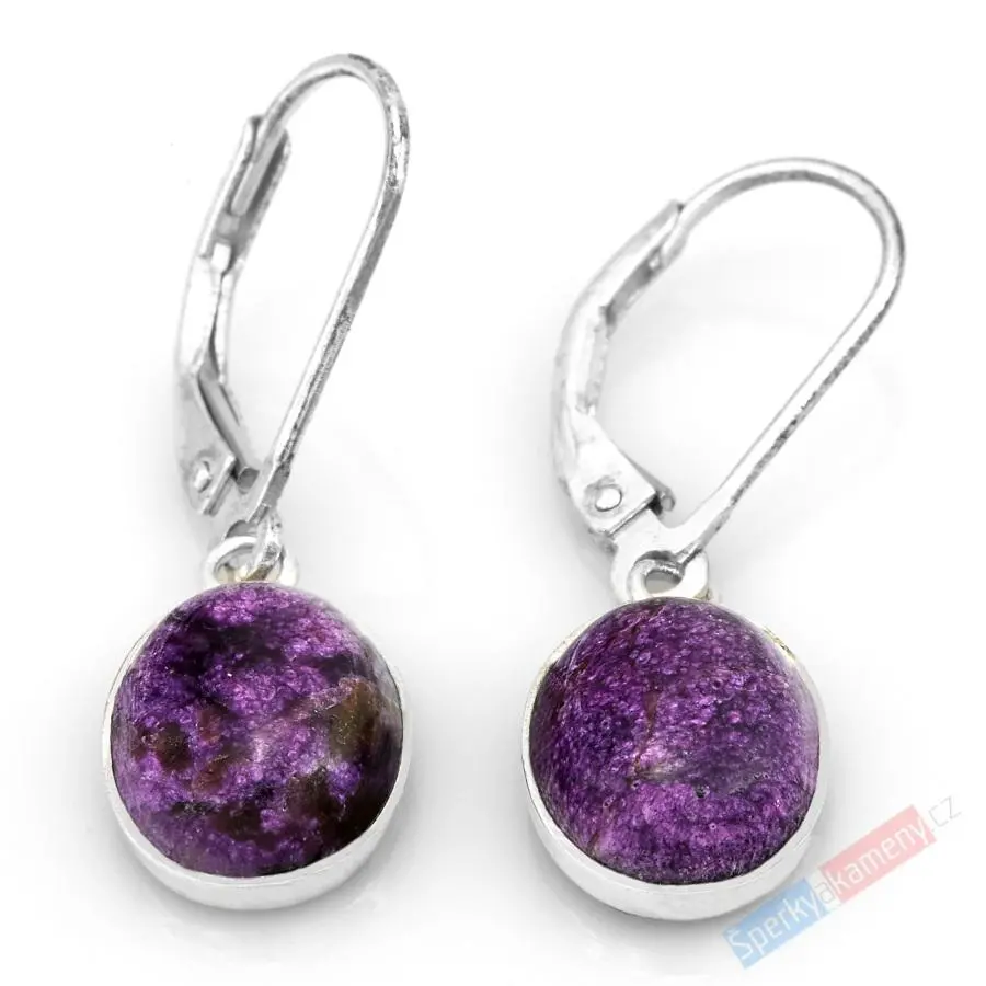 Náušnice ze stichtitu vysoké kvality QA (RARITA). Tvar oválků o výšce cca 11 mm (se závěsem cca 28 mm) a šířce cca 9 mm; váha obou náušnic 2,0 g. Zasazení, závěs a zapínání jsou ze stříbra (Ag 925/1000). Stichtit má nízkou tvrdost, nedoporučuje se nosit při činnostech, kde by mohlo dojít k jeho poškrábání. Stichtit je výjimečný svojí neopakovatelnou kresbou. Náušnice jsou identické s fotografií. Původ minerálu: Tasmánie.