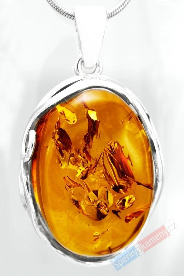 Přívěsek z baltského jantaru extra kvality QAA. Nádherná medová barva. Tento typ jantarových přívěsků bývá vždy větší hloubky/tloušťky proto, aby vynikla jeho vnitřní krása. Tento druh nádherných jantarů se nachází pouze na Baltu. Přívěsek má tvar oválu o výšce cca 32 mm (se závěsem cca 42 mm), šířce cca 24 mm a tloušťce/hloubce cca 13 mm; váha 11,1 g. Originální zasazení, úchyt a závěs jsou ze stříbra (Ag 925/1000). Původ minerálu: oblast Baltu, Sambijský poloostrov. Řetízek není součástí šperku. Přívěsek je identický s fotografií.