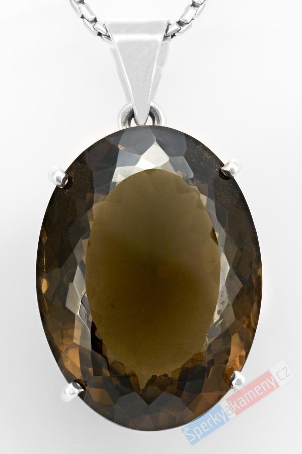 Stříbrný přívěsek (Ag 925/1000) s broušenou záhnědou QA, ovál cca 30 x 23 mm (ZA1513P)