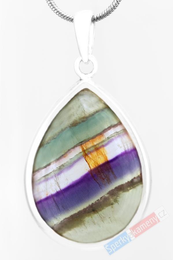 Stříbrný přívěsek (Ag 925/1000) s fluoritem, kapka cca 29 x 22 mm (FL3026P)