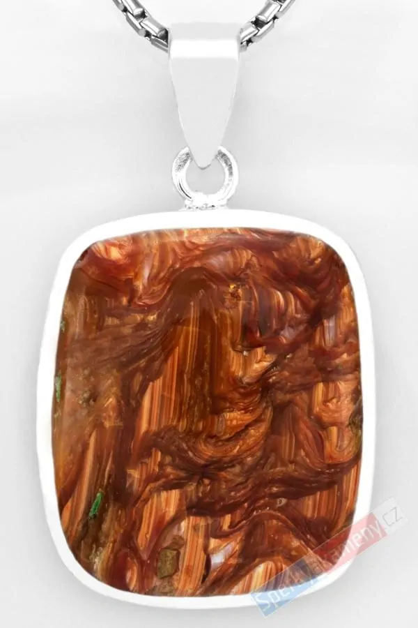 Přívěsek z opálu s pietersitem vysoké kvality QA nádherného probarvení (RARITA). Přívěsek má obdélníkový tvar o výšce cca 29 mm (s úchytem cca 42 mm) a šířce cca 25 mm; váha 8,6 g. Úchyt a zasazení jsou ze stříbra (Ag 925/1000). Původ minerálu: Outjo, Namíbie. Řetízek není součástí šperku. Přívěsek je identický s fotografií.