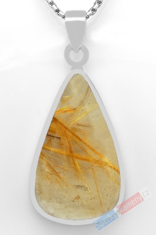 Stříbrný přívěsek (Ag 925/1000) se sagenitem QAA, kapka cca 39 x 24 mm, RARITA (KRS2117P)