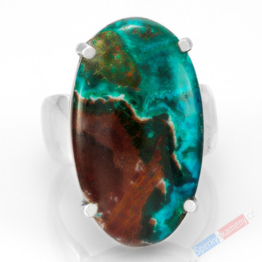 Velký stříbrný prsten (Ag 925/1000) s dioptasem QA, vel. kamene cca 26 x 16 mm, RARITA, "smaragdové vody řeky Konga I." (DI2214R)