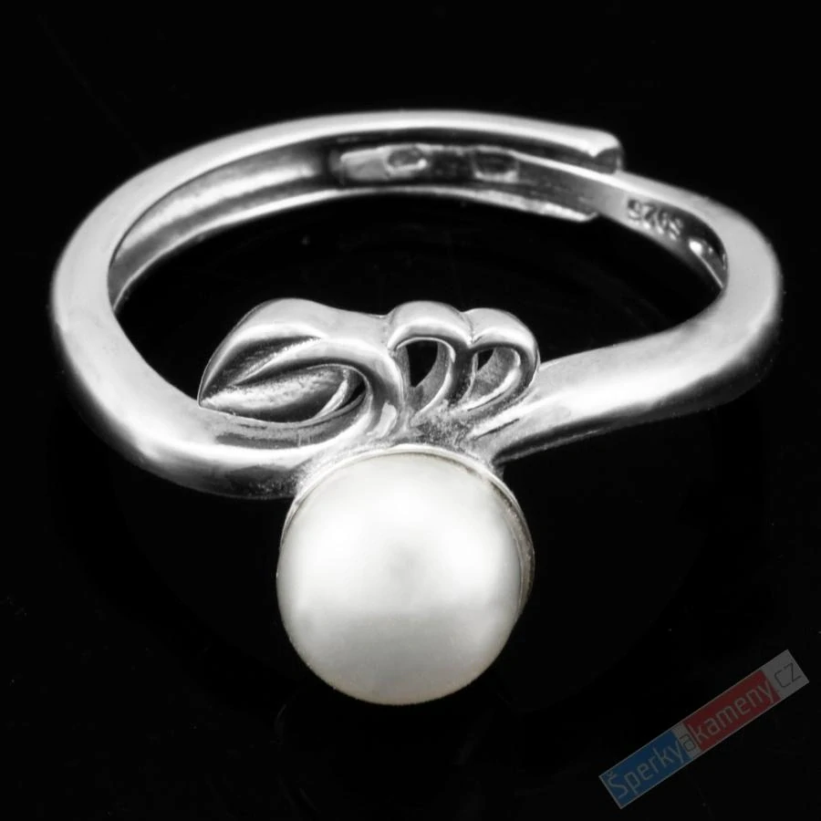 Stříbrný prsten (Ag 925/1000) s bílou kulatou sladkovodní perlou. Perla o průměru cca 7 mm. Nastavitelná velikost od cca 54 až 58. Prsten je identický s fotografií.