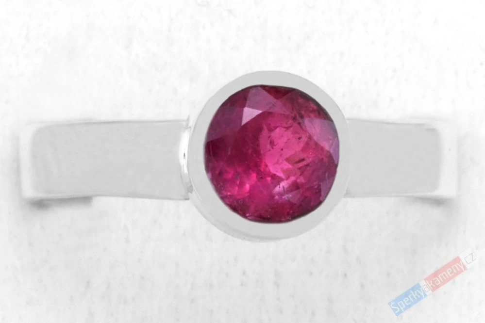 Stříbrný prsten (Ag 925/1000) s broušeným turmalínem rubelitem QAA, prům. kamene cca 8 mm, krásná barva (RB1696R)
