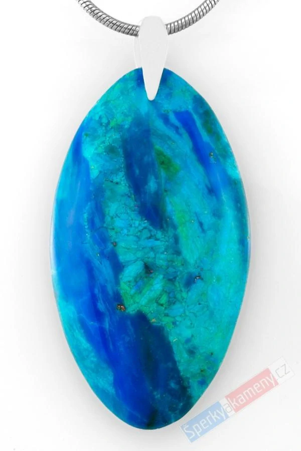 Přívěsek z peruánského opálu nádherné tyrkysovo-modré až blankytné barvy s úžasnou neopakovatelnou kresbou minerálu. Jedná se o velmi vzácnou RARITU, jelikož se tento opál nachází pouze na jediném nalezišti na světě, v Peru.