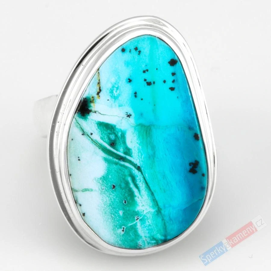 Velký stříbrný prsten (Ag 925/1000) s tyrkysem v chryzokolu QAA, vel. kamene cca 30 x 21 mm, krásné probarvení, VELIKOST 57, RARITA (TCH1656R)